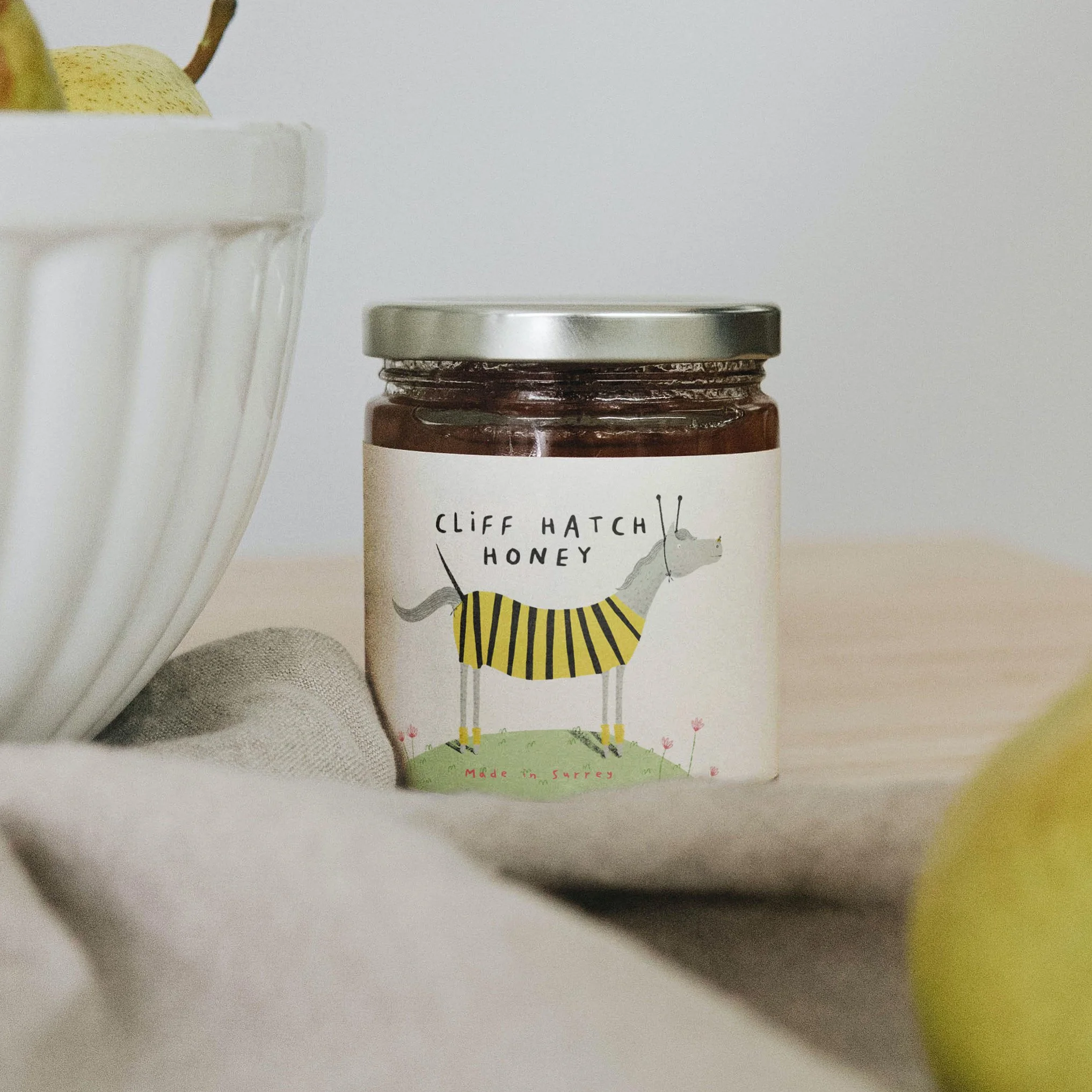 A commission from a local honeybee man, to create a jar label for his 2025 batch of honey. The hives are set on a stables based in Surrey.